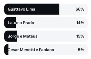 Se depender daqueles que acompanham o M1OL, a Fenacafé 2026 já tem dono: Gusttavo Lima, que disparou na nossa enquete e deixou para trás nomes de peso como Nathanzinho, Lauana Prado, os Menottis e Jorge & Mateus – uma disputa com folga pelo embaixador, com 66% dos votos.
