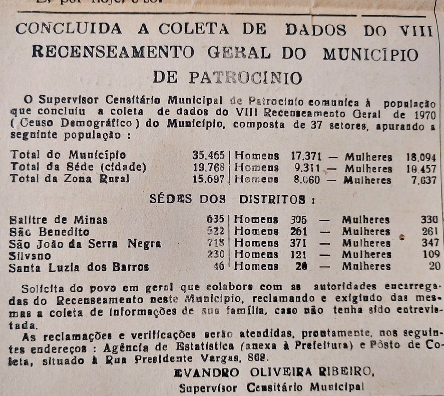 À frente desse trabalho, o supervisor censitário municipal, senhor Evandro de Oliveira Ribeiro, ajudava a transformar números em identidade, dados em história viva.