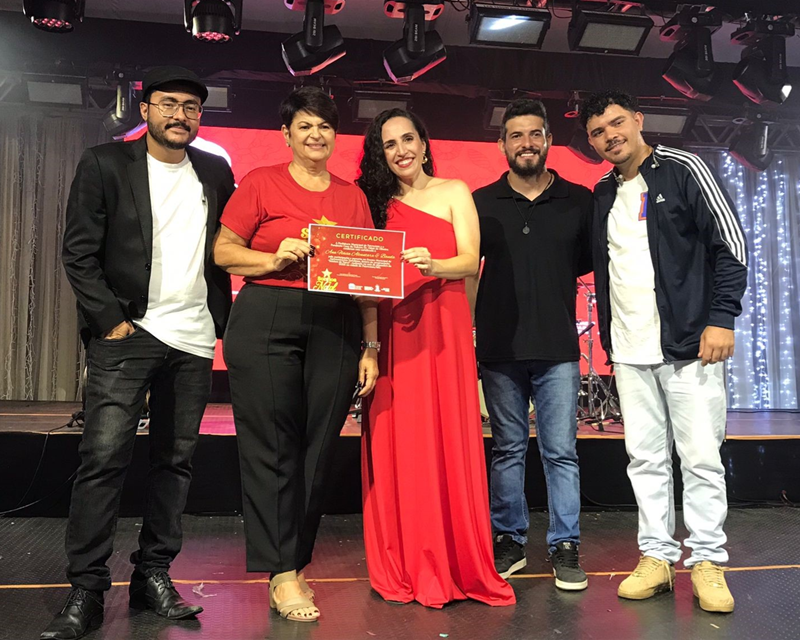 Durante a apresentação, o Coral Patrocínio Encanto prestou uma homenagem à Secretária Municipal de Cultura e Turismo, Ana Valéria de Rezende Cunha, e à Secretária Adjunta, Cleide Araújo, em reconhecimento ao apoio e incentivo às ações culturais do município.